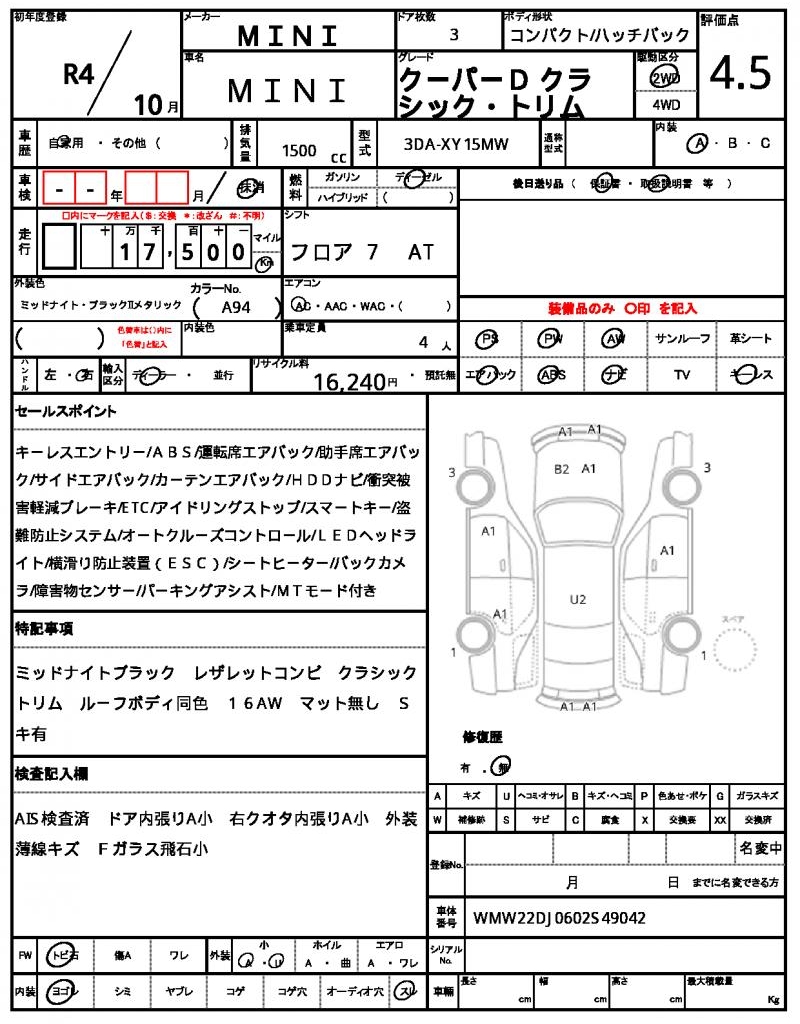 | VIN/Serial No. | WMW22DJ0602S49042 |