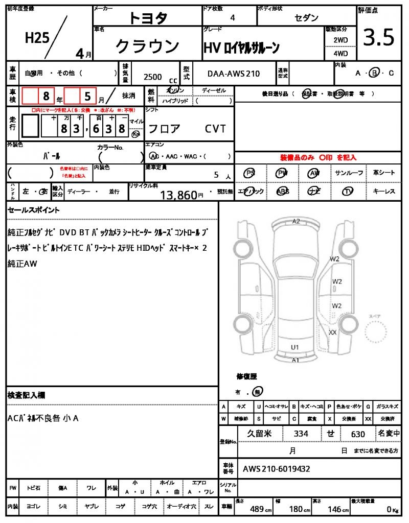 | VIN/Serial No. | AWS210-6019432 |
