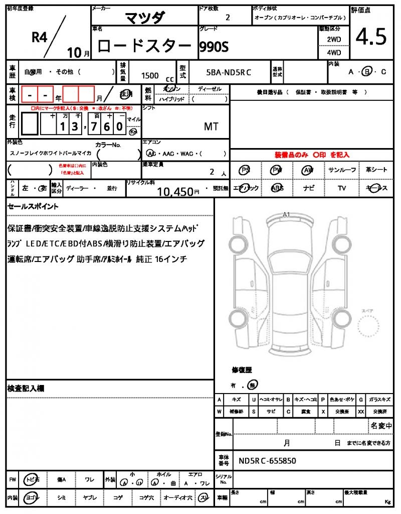 VIN/Serial No. ND5RC-655850