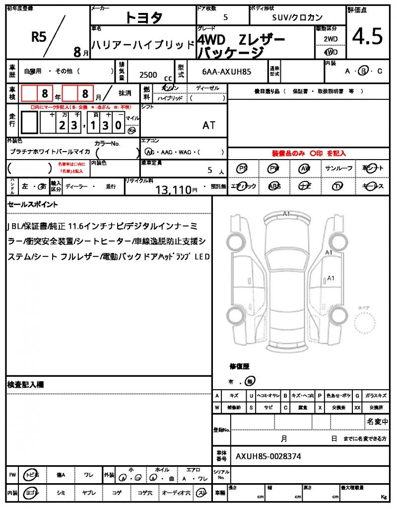 | VIN/Serial No. | AXUH85-0028374 |