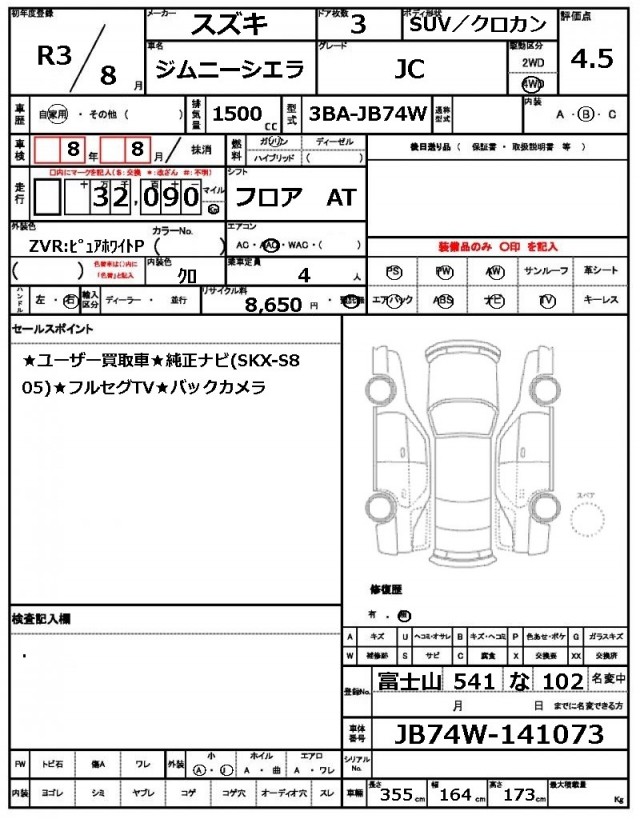 | VIN/Serial No. | JB74W-141073 |