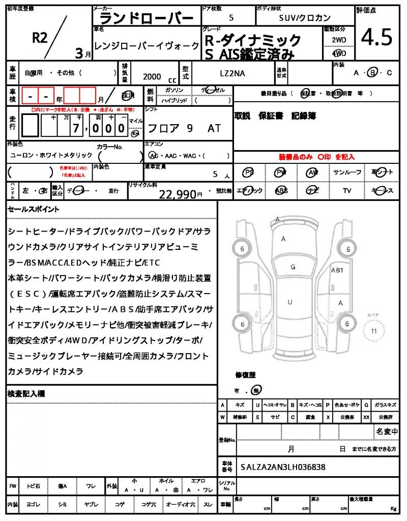 | VIN/Serial No. | SALZA2AN3LH036838 |