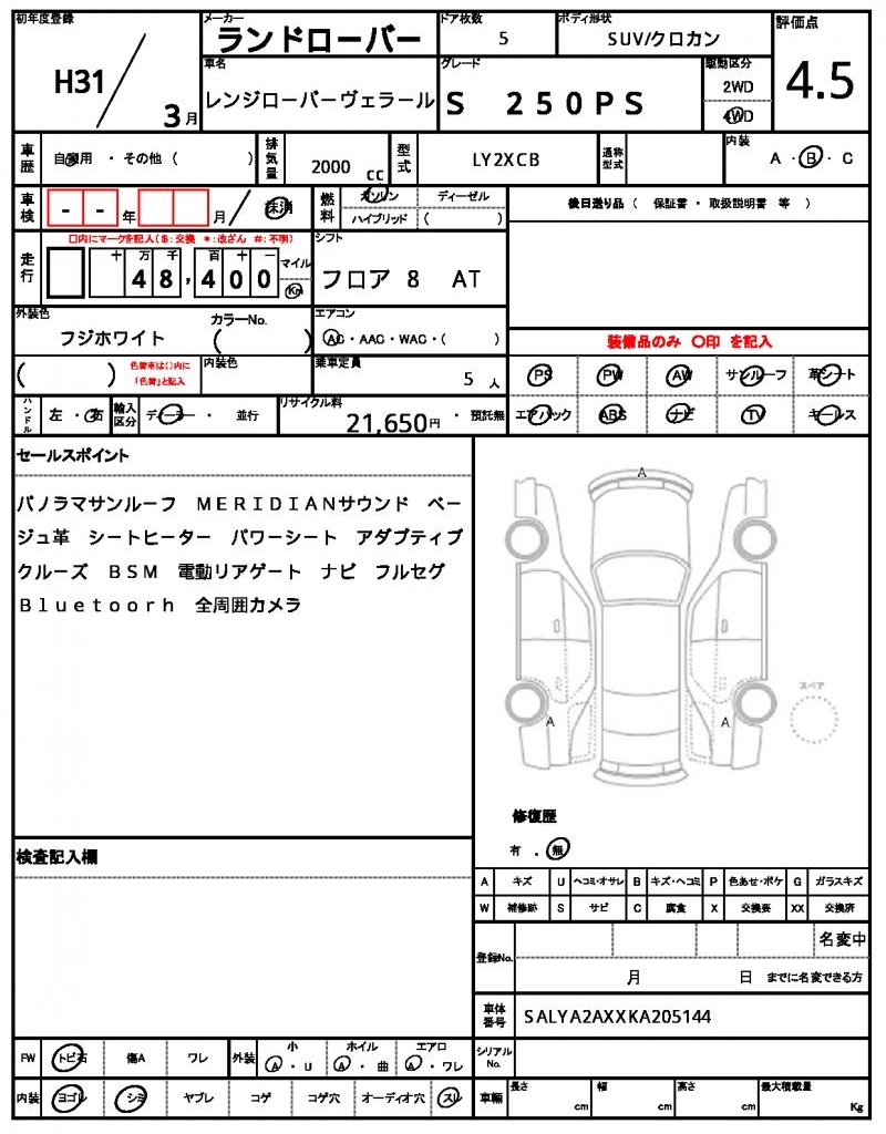 VIN/Serial No. SALYA2AXXKA205144