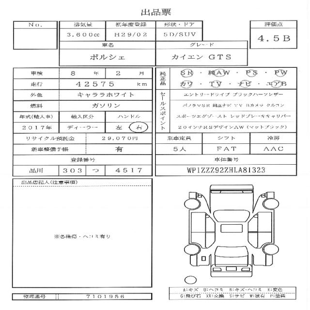 | VIN/Serial No. | WP1ZZZ92ZHLA81323 |