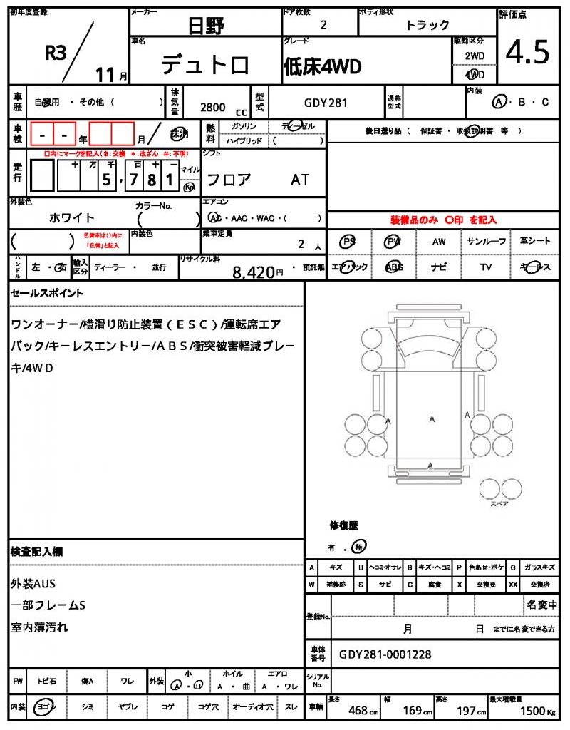 | VIN/Serial No. | GDY281-0001228 |