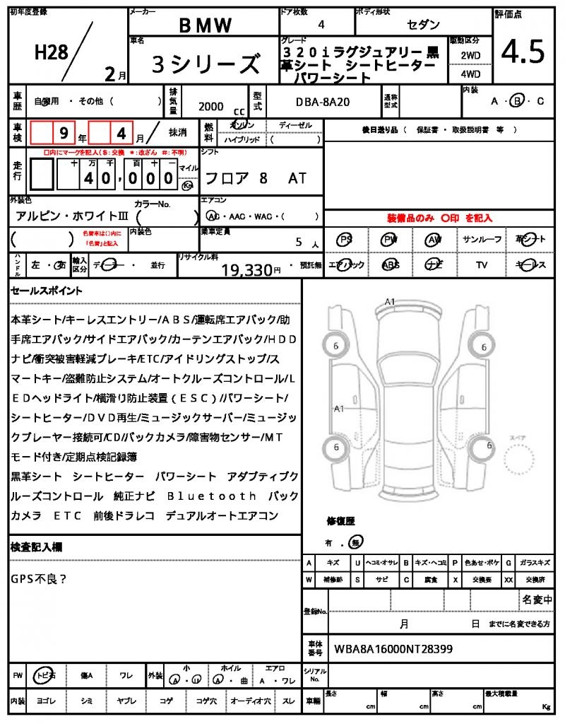 VIN/Serial No. WBA8A16000NT28399