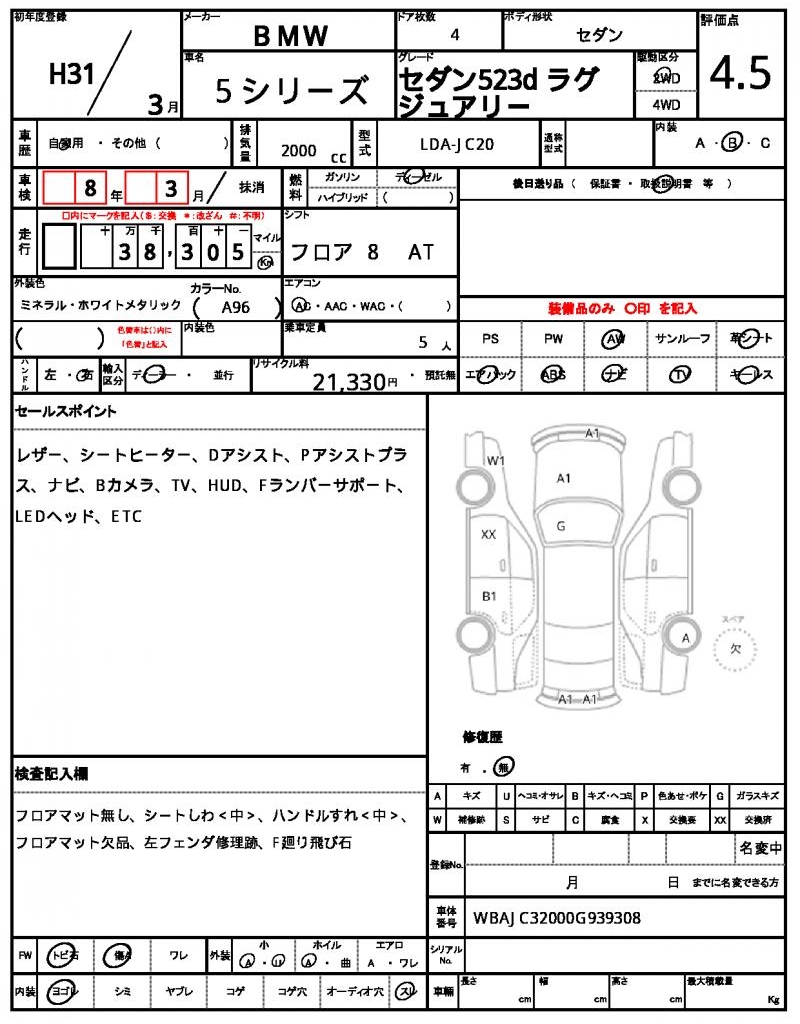 | VIN/Serial No. | WBAJC32000G939308 |