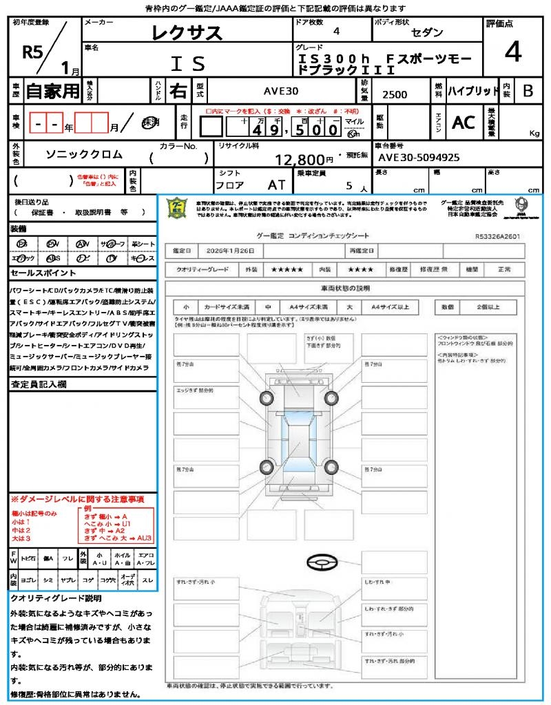 | VIN/Serial No. | AVE30-5094925 |