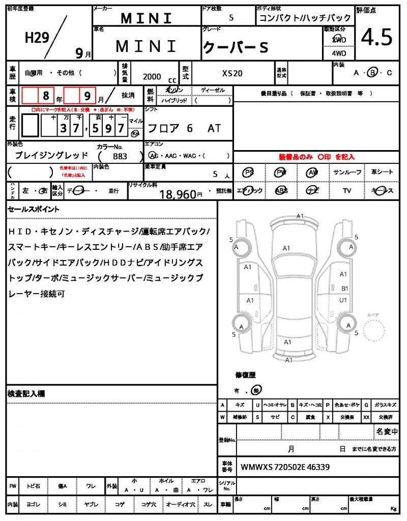 | VIN/Serial No. | WMWXS720502E46339 |