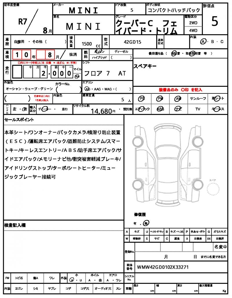 | VIN/Serial No. | WMW42GD0102X33271 |