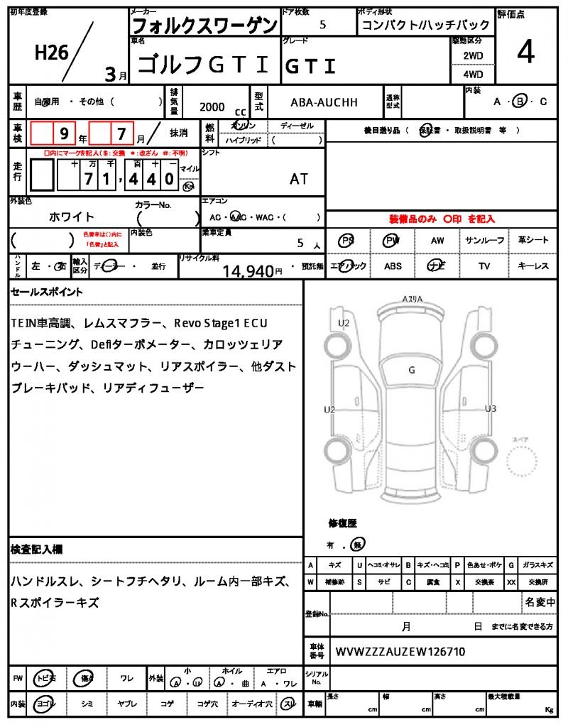 VIN/Serial No. WVWZZZAUZEW126710
