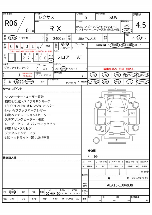 | VIN/Serial No. | TALA15-1004838 |