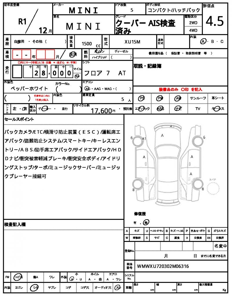 | VIN/Serial No. | WMWXU720302M06316 |