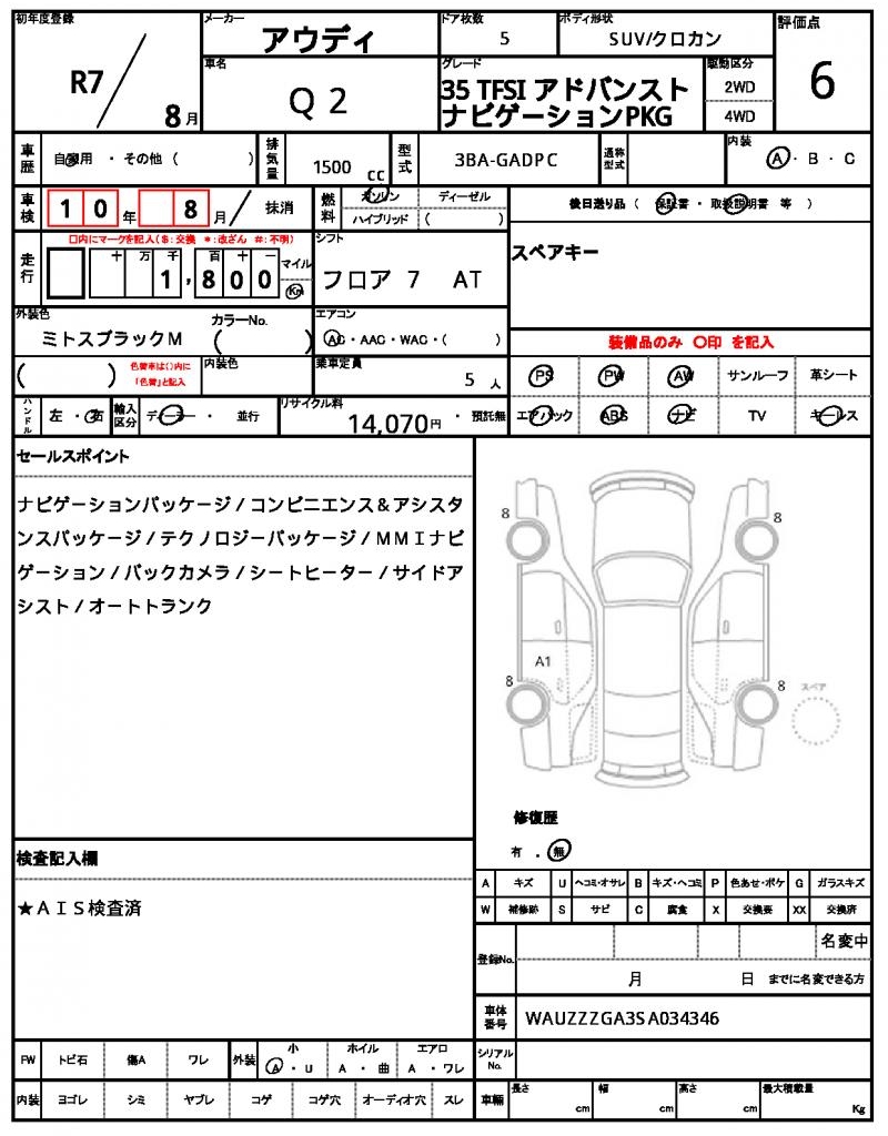 VIN/Serial No. WAUZZZGA3SA034346