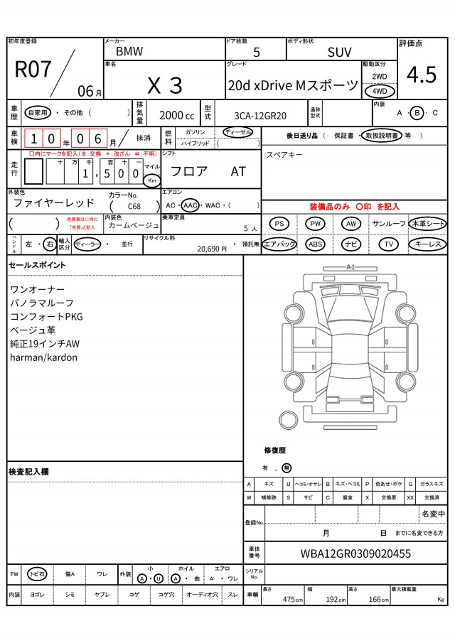VIN/Serial No. WBA12GR0309020455