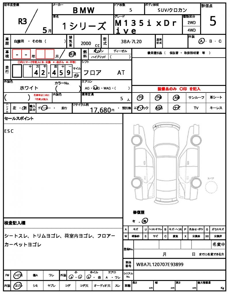 VIN/Serial No. WBA7L120707E93899