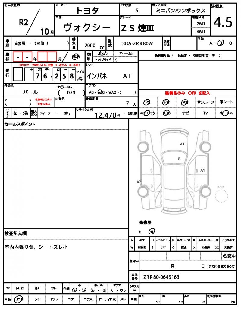 | VIN/Serial No. | ZRR80-0645163 |
