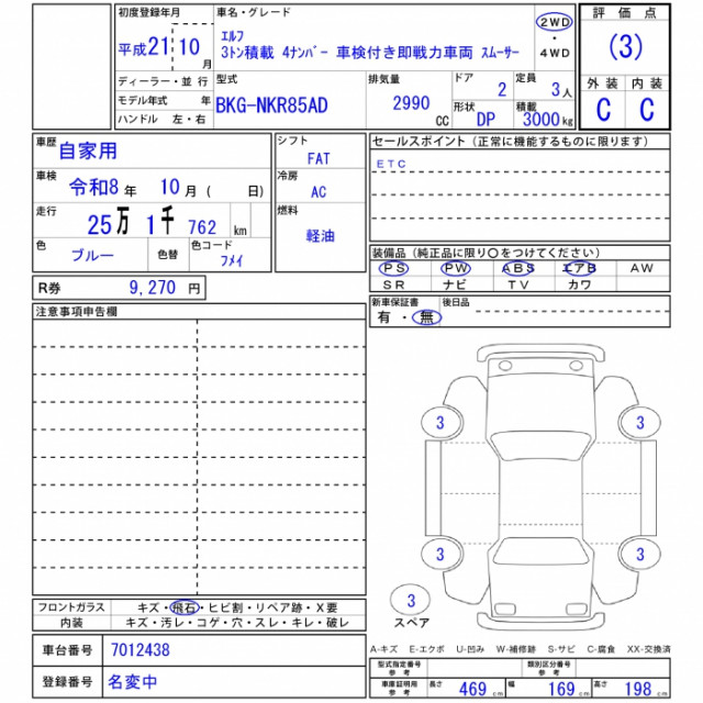 | VIN/Serial No. | NKR85-7012438 |