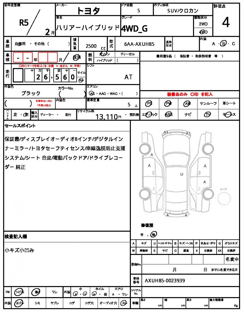 | VIN/Serial No. | AXUH85-0023939 |