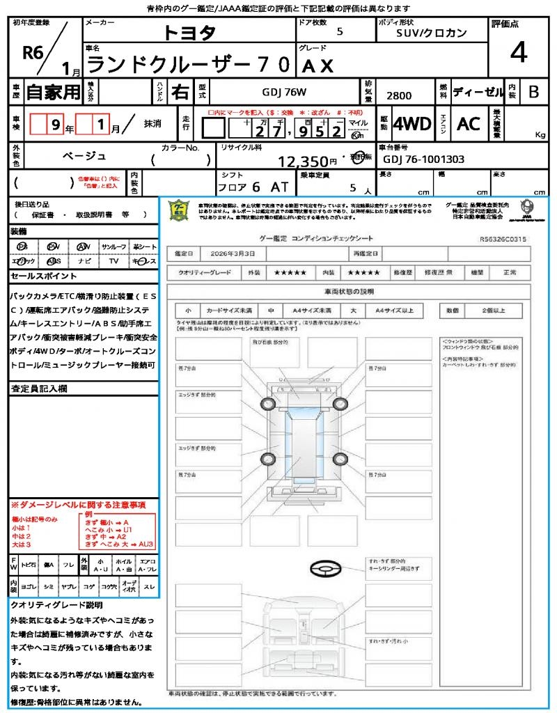 | VIN/Serial No. | GDJ76-1001303 |