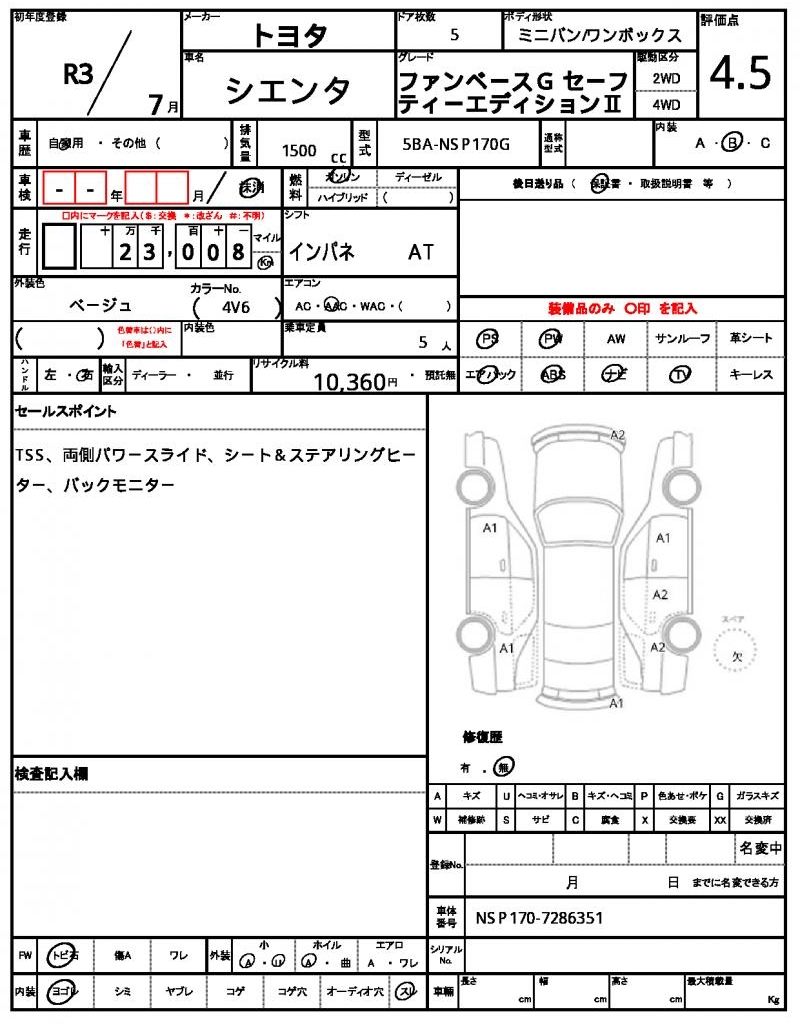 | VIN/Serial No. | NSP170-7286351 |