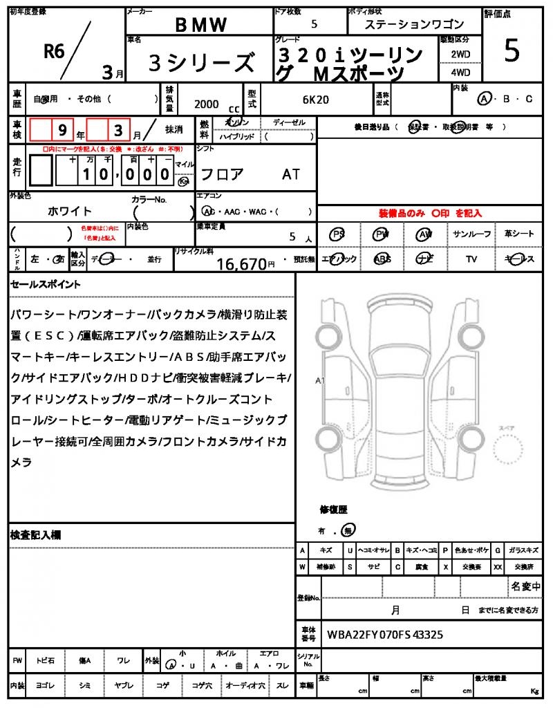 | VIN/Serial No. | WBA22FY070FS43325 |