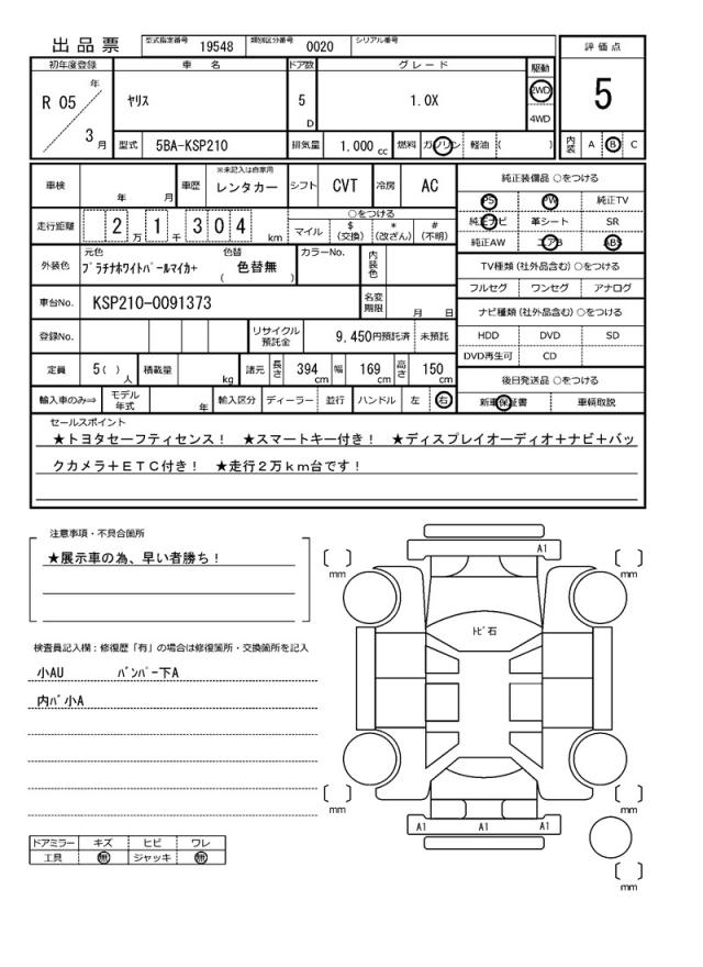 VIN/Serial No. KSP210-0091373