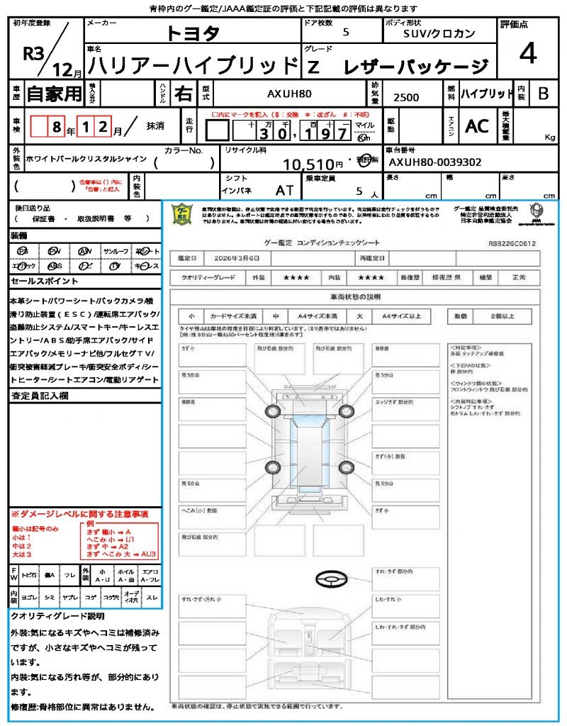 | VIN/Serial No. | AXUH80-0039302 |