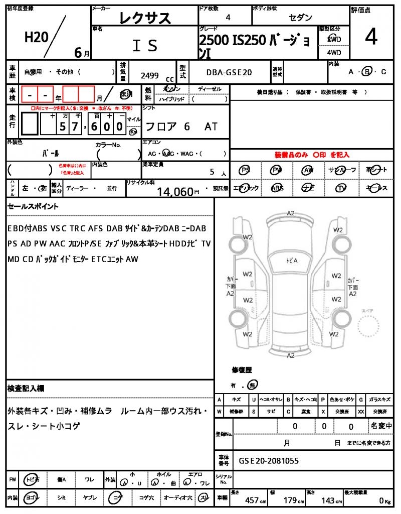 | VIN/Serial No. | GSE20-2081055 |