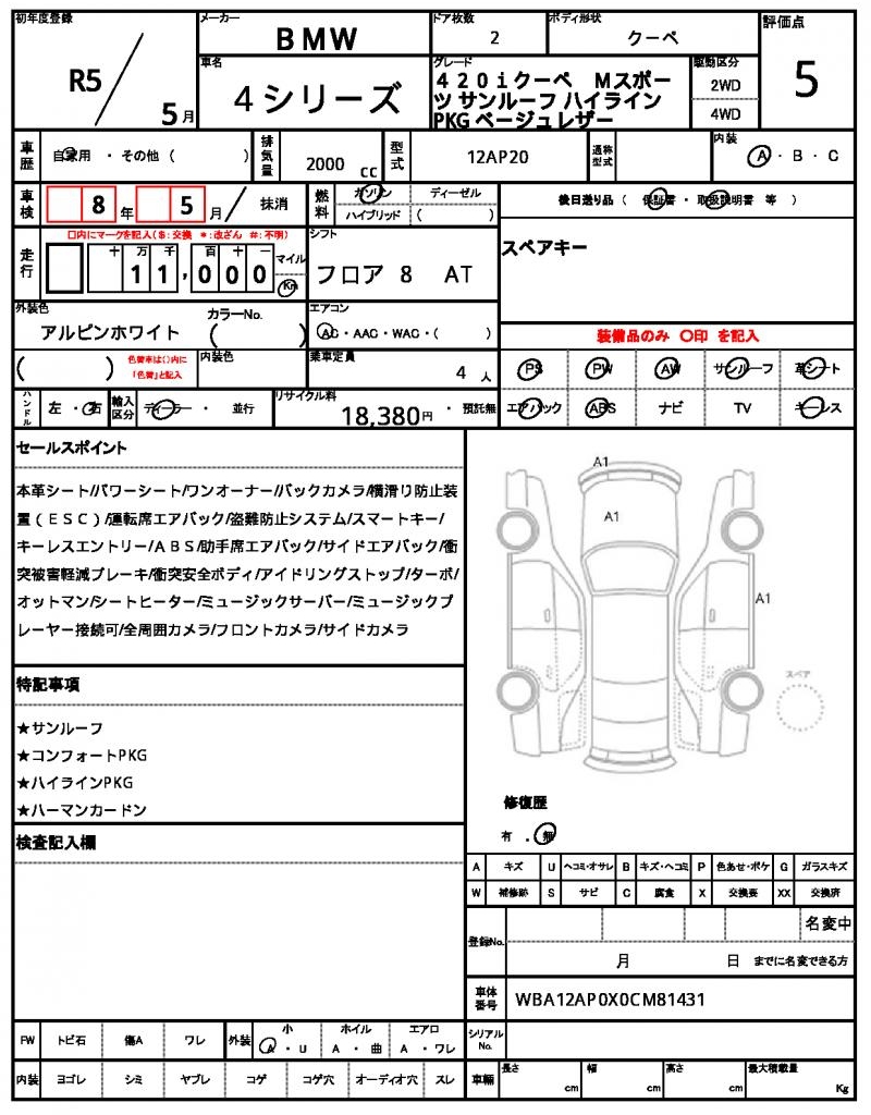 | VIN/Serial No. | WBA12AP0X0CM81431 |
