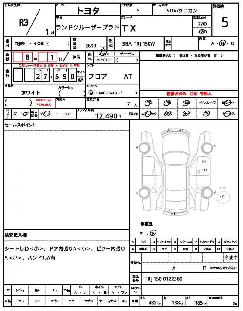 VIN/Serial No. TRJ150-0122380