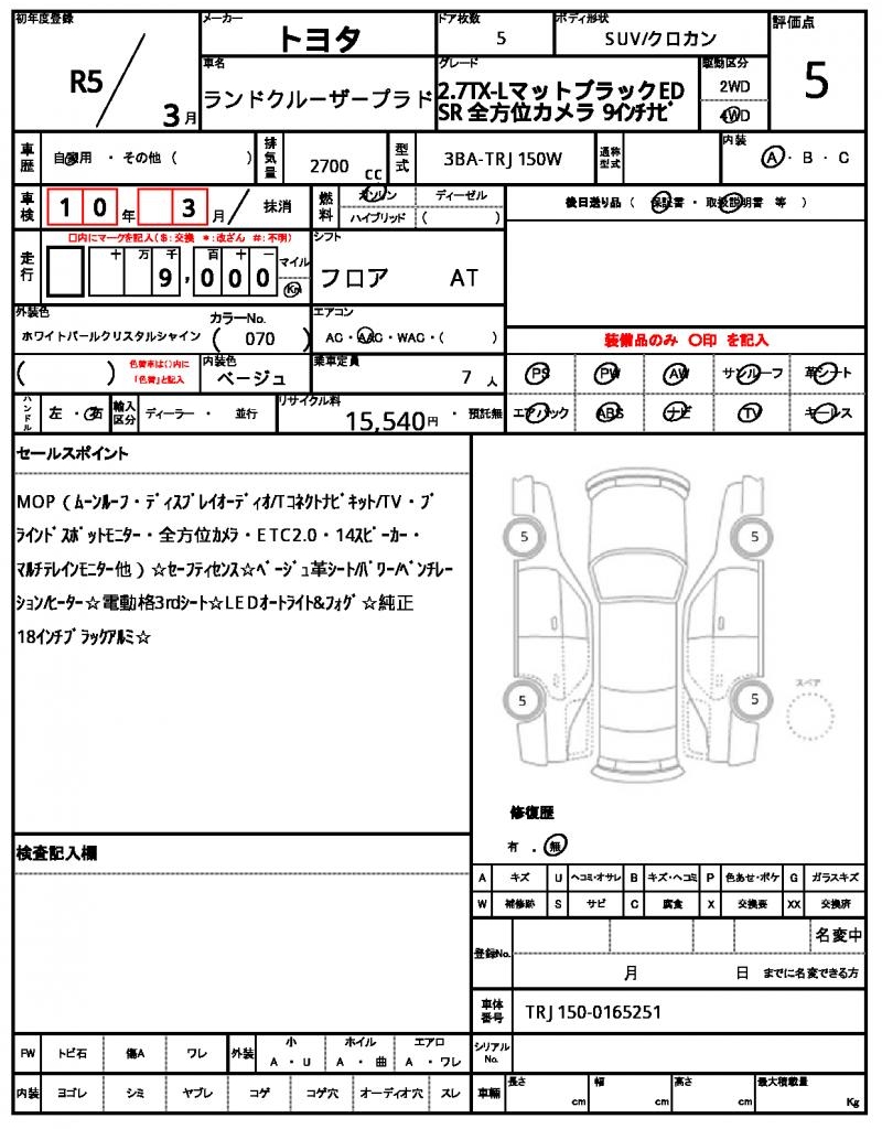 VIN/Serial No. TRJ150-0165251