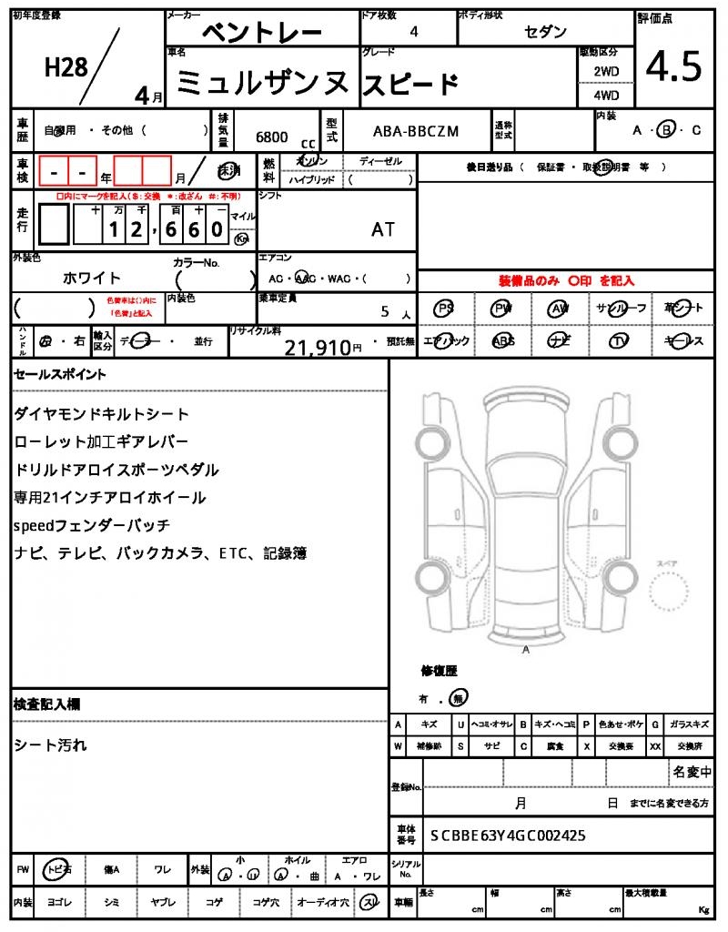 | VIN/Serial No. | SCBBE63Y4GC002425 |
