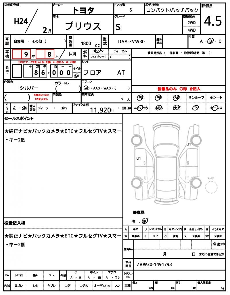 VIN/Serial No. ZVW30-1491793