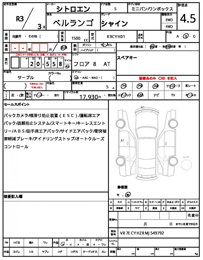 | VIN/Serial No. | VR7ECYHZRMJ549792 |