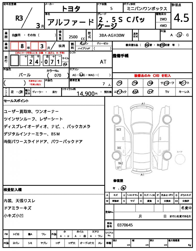 | Model code | 3BA-AGH30W |