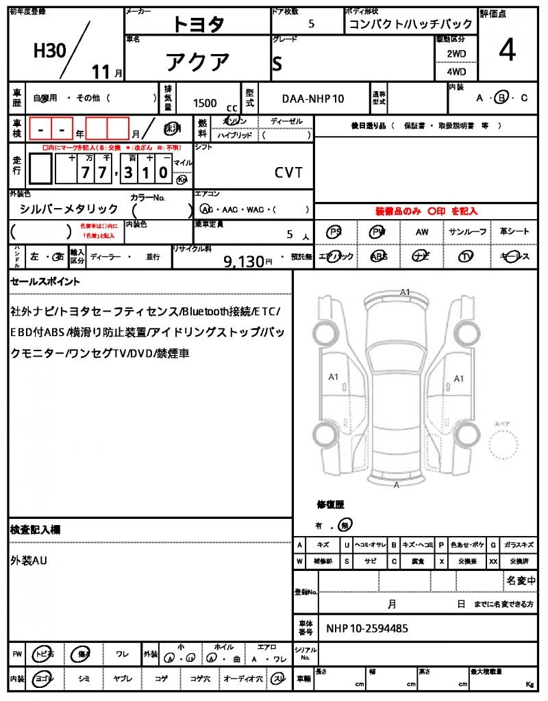 | VIN/Serial No. | NHP10-2594485 |