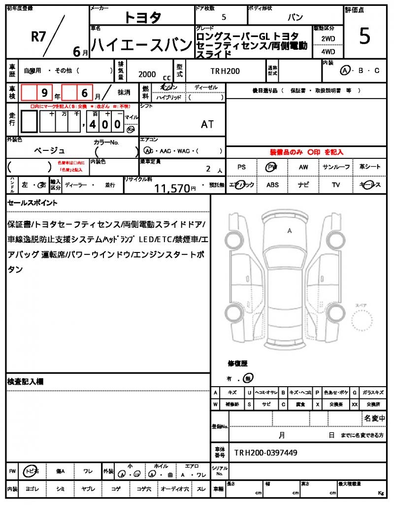 | VIN/Serial No. | TRH200-0397449 |