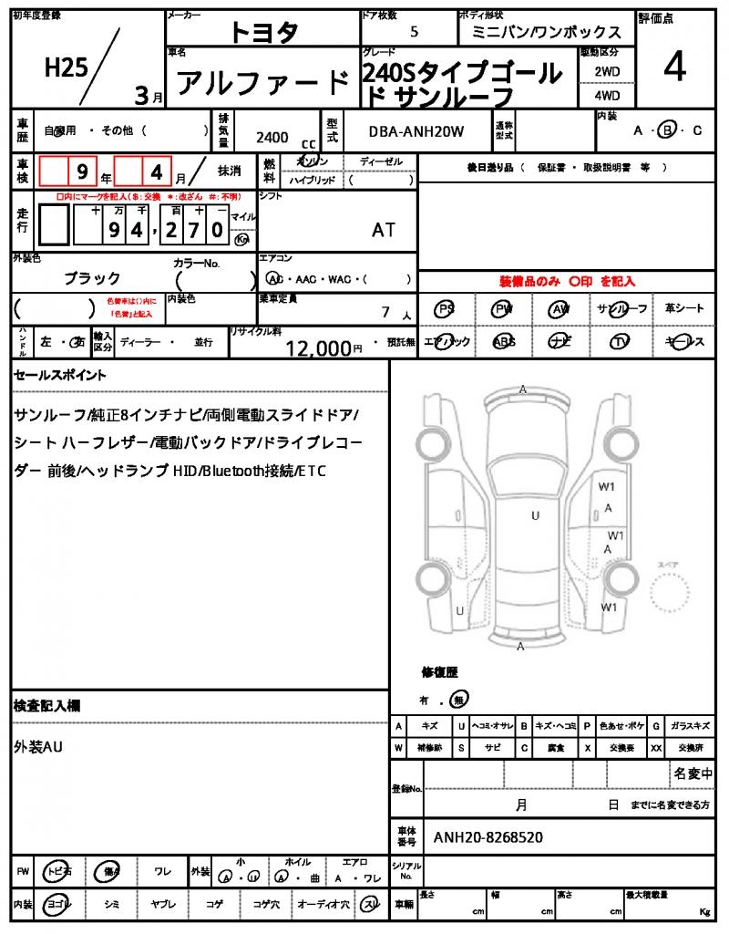 | VIN/Serial No. | ANH20-8268520 |