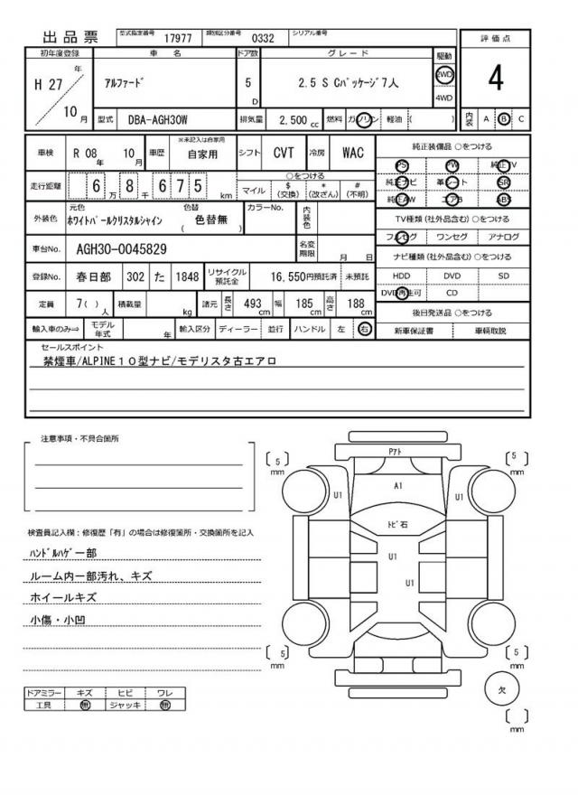 | VIN/Serial No. | AGH30-0045829 |