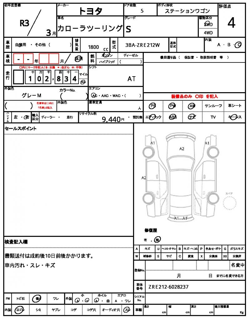 | VIN/Serial No. | ZRE212-6028237 |