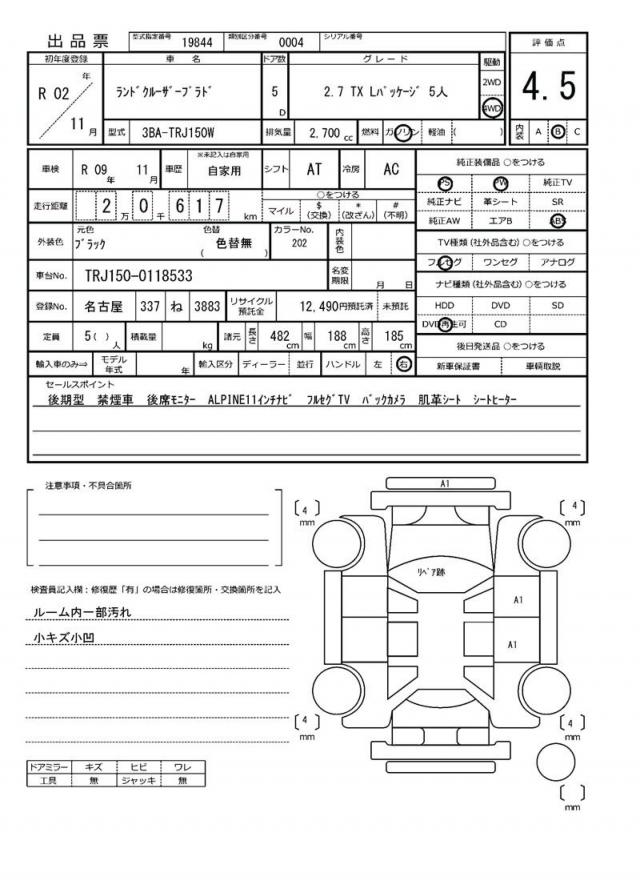 | VIN/Serial No. | TRJ150-0118533 |