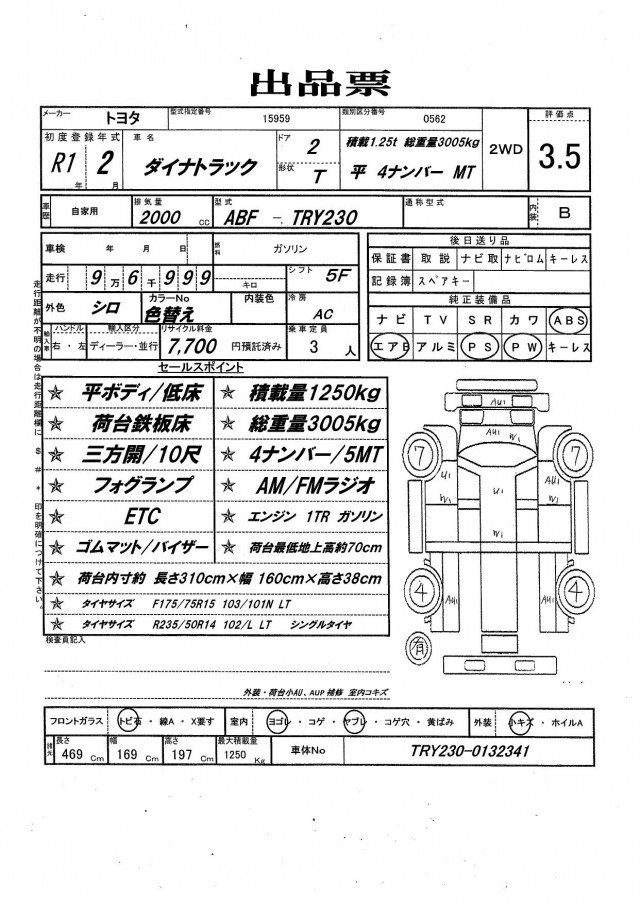 | VIN/Serial No. | TRY230-0132341 |