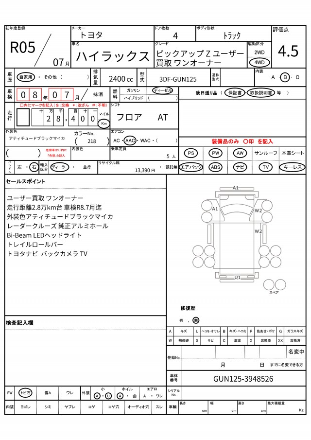 VIN/Serial No. GUN125-3948526