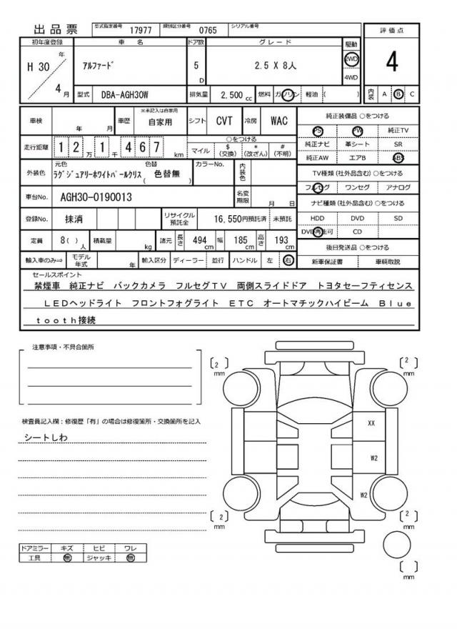 | VIN/Serial No. | AGH30-0190013 |