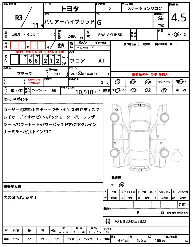 | VIN/Serial No. | AXUH80-0038822 |