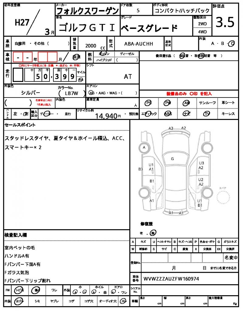 VIN/Serial No. WVWZZZAUZFW160974