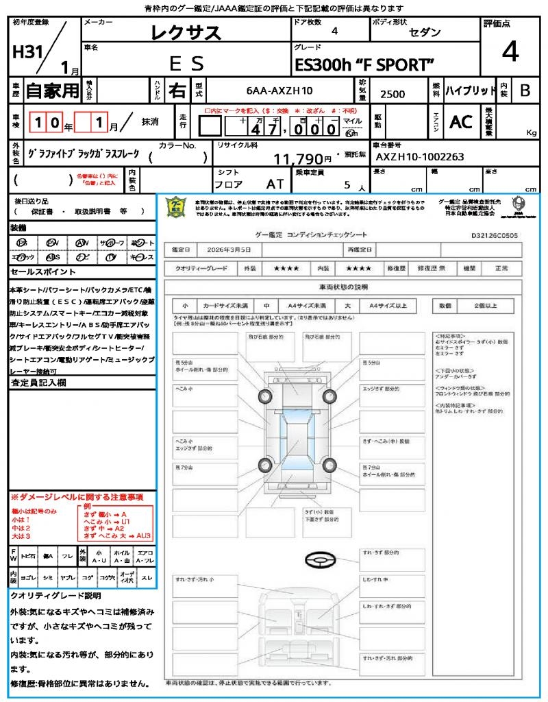 VIN/Serial No. AXZH10-1002263