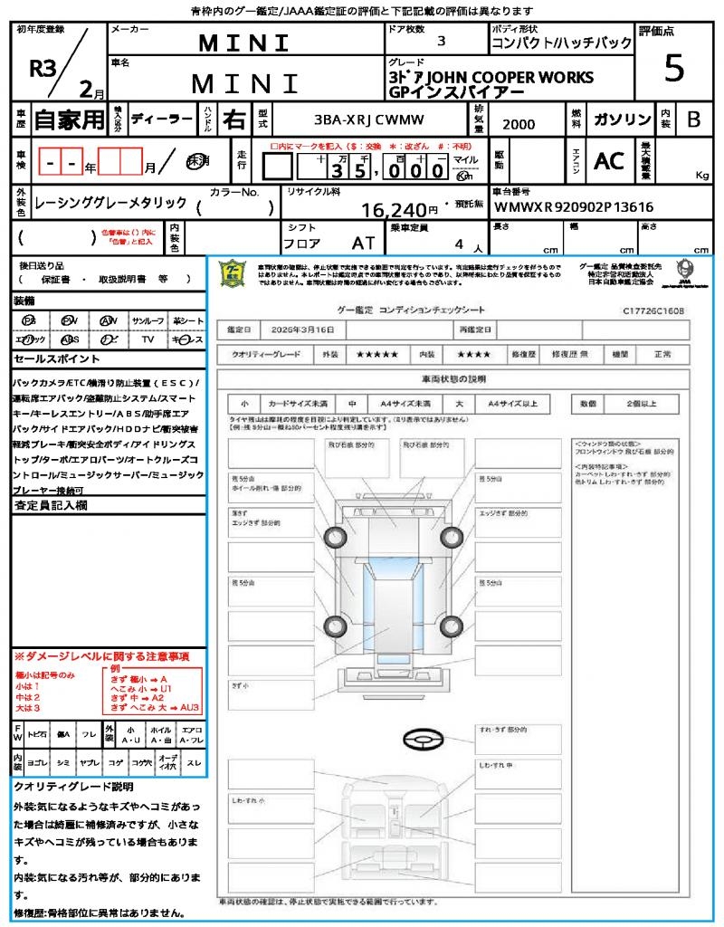 | VIN/Serial No. | WMWXR920902P13616 |
