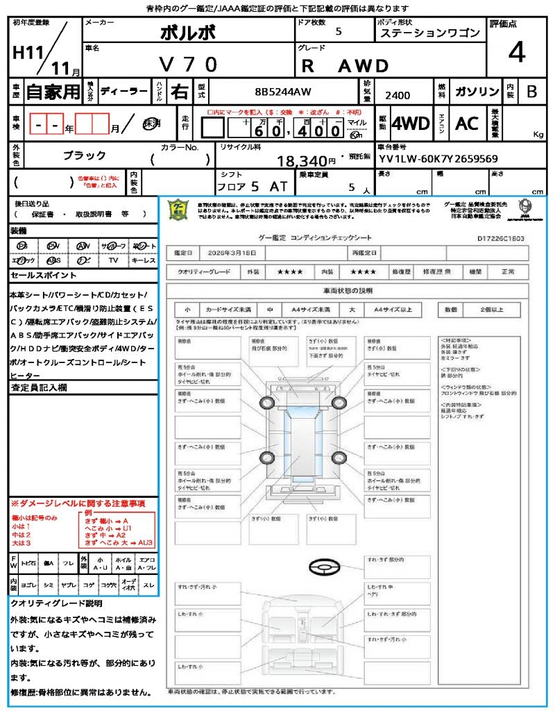 | VIN/Serial No. | YV1LW-60K7Y2659569 |